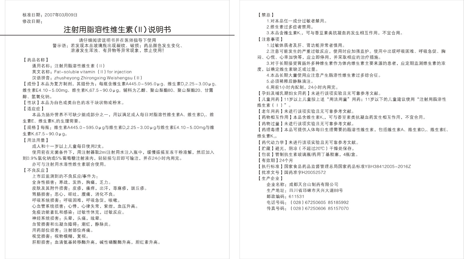 【通用名】注射用脂溶性維生素(II)